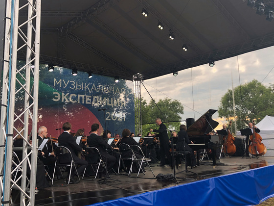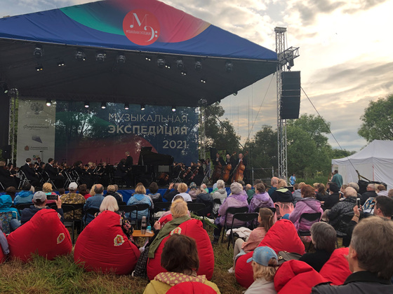 Музыкальной части предшествовал поэтический вечер. Лекции и поэтические вечера перед концертом - новшество текущего сезона, о котором мы рассказывали в репортаже с открытия фестиваля. Культурные прологи готовит просветительский проект «Arzamas». За музыкальную часть ответственными были маэстро Артем Маркин и Губернаторский симфонический оркестр, солисты Сергей Накаряков (труба, флюгельгорн), Александра Стычкина и Катя Сканави (фортепиано), Александр Ситковецкий (скрипка). Ну и великий Дмитрий Шостакович. Среди живописного Суздальского Ополья прозвучал его концерт для фортепиано с оркестром. Затем были композиции Листа, Баха и Бруха.