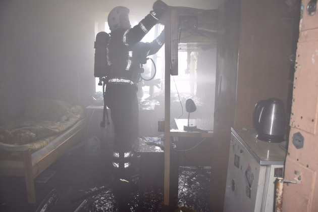 К месту вызова незамедлительно выехали пожарные подразделения. В это же время ответственные по пожарной безопасности общежития эвакуировали студентов и предприняли меры к ликвидации возгорания с помощью внутренних пожарных кранов.