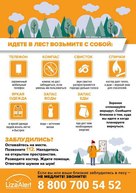 1. Сообщите близким о том, в какой лес вы идете, откуда будете в него входить и в какое время планируете вернуться. Нет возможности сообщить – оставьте записку, отправьте сообщением на телефон. Если вы собрались в поход, зарегистрируйте свой маршрут на сайте МЧС или позвонив в Единую дежурно-диспетчерскую службу своего района.