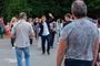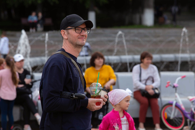 Впрочем, дебютный опенэйр в центральном парке обошелся без «хлябей небесных». Так что желающих либо потанцевать, либо просто посмотреть на это веселье набралось предостаточно. Одни танцевали, другие снимали видео на телефоны, третьи просто улыбались, глядя, как отплясывают либо их друзья, либо малыши, у которых всем взрослым надо поучиться получать радость от жизни, ни на что и ни на кого не оглядываясь... Люди пришли в парк в этот вечер с друзьями, с любимыми, с детьми, с домашними животными. Милейший стаффордширдский терьер, кстати, вовсю отвлекал зрителей от танцплощадки заигрываниями с детьми и их родителями — ласковее пса еще поискать!