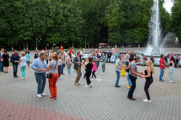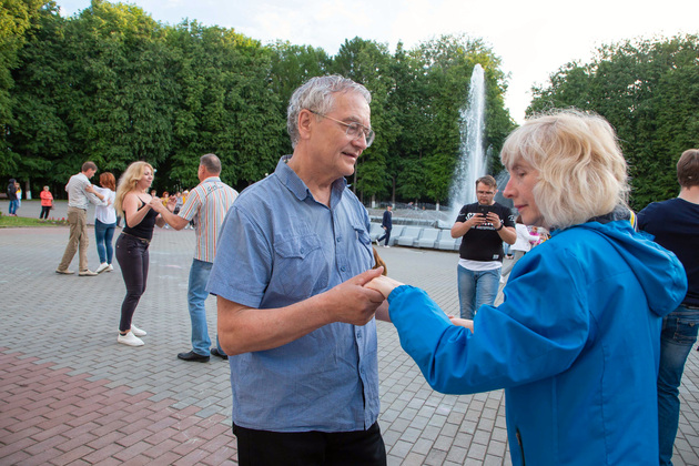 Конечно, затея не спонтанная — к ней готовились несколько месяцев. И поддержавшее ее городское управление культуры и туризма. И сама администрация Центрального парка культуры и отдыха Владимира, выделившая профессиональным и самодеятельным танцорам площадку у главного фонтана. И весь коллектив одного из местных танцевальных клубов, чья задача — не только показывать всем желающим основные движения популярных латиноамериканских танцев на свободных мастер-классах, но и сразу после этого помочь раскрепоститься в оттачивании заученного — на обязательных вечеринках, уже в парах с профи.