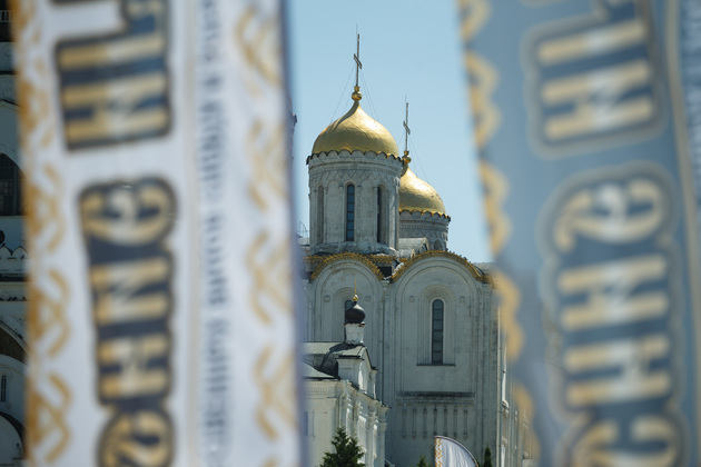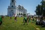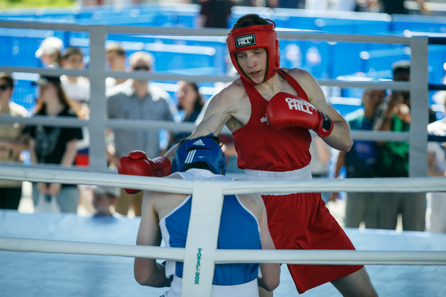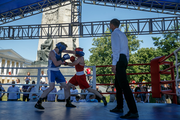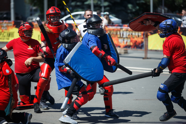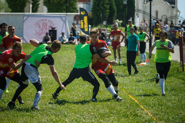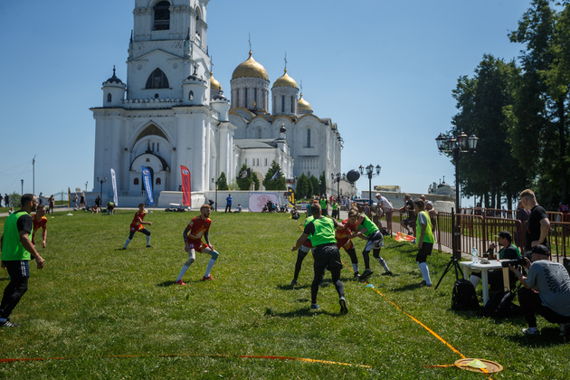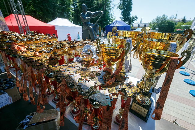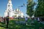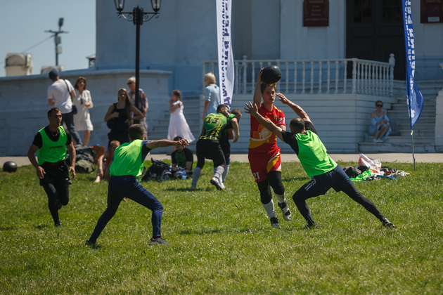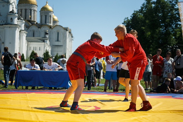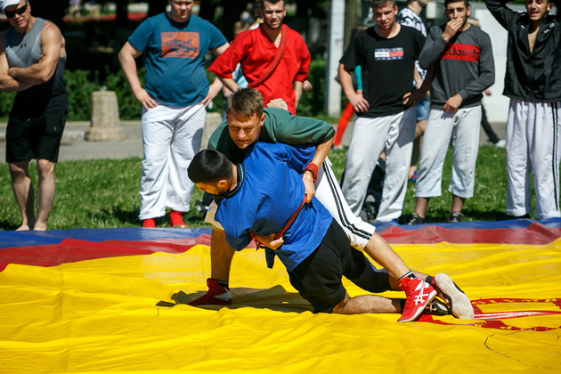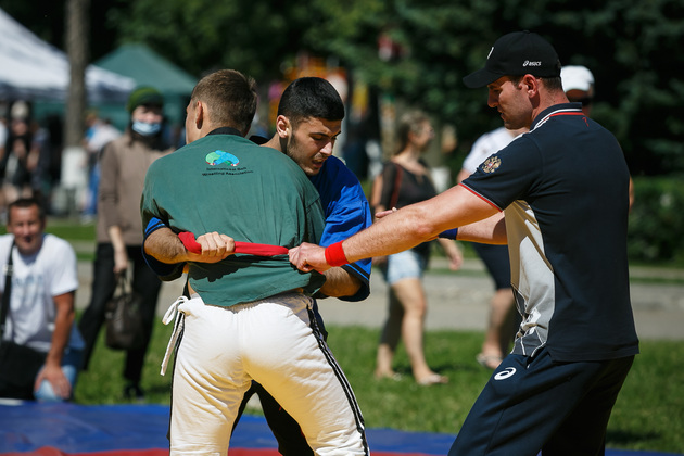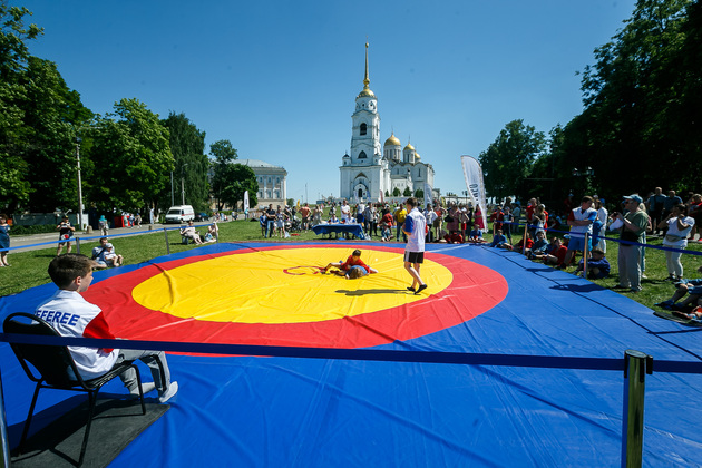 На лужайке близ Успенского собора играли в килу, а самые юные спортсмены сражались в борьбе на поясах и самбо.