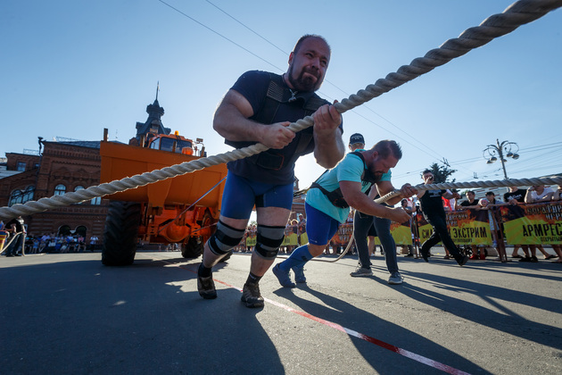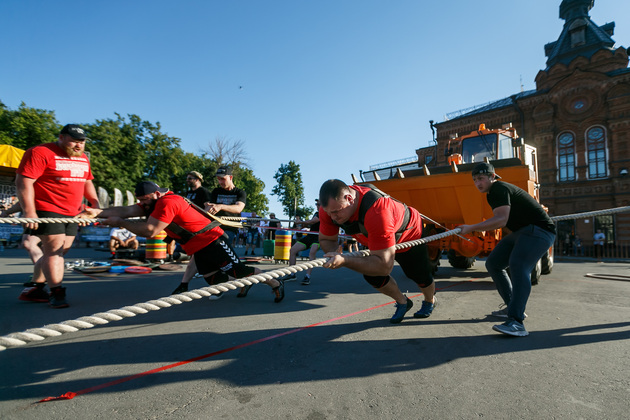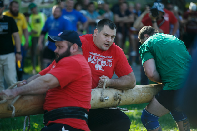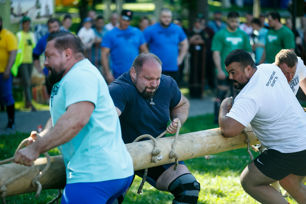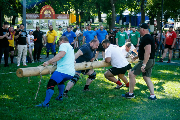 В рамках силовой эстафеты спортсмены из Ярославской, Липецкой, Московской, Нижегородской, Саратовской областей, Краснодарского края поднимали брёвна весом более 145 кг, метали тяжеленные кеги и даже пытались сдвинуть с места тяжелую технику.