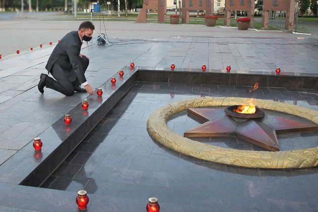 Участники мероприятия возложили цветы к Вечному огню, а также зажгли свечи и почтили минутой молчания память о 27 миллионах советских граждан, погибших в годы Великой Отечественной войны.