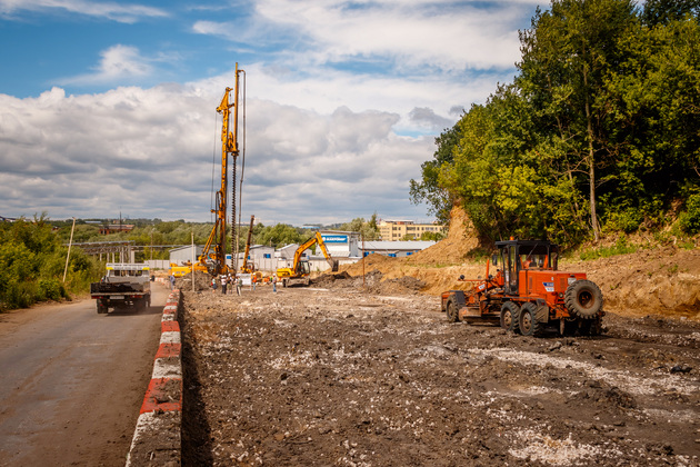Дело в том, что Рпенский проезд прокладывается по очень сложной с геологической точки зрения местности. Слабые несущие грунты требуют, чтобы новая дорога опиралась на сваи. И это помимо шести мощных опор для двухсотметрового моста, который пересечет наискось реку Рпень. (Опоры для моста уже вовсю строят).