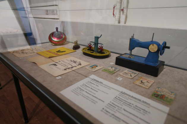 Здесь представлены игрушки, детские настольные игры, наборы одежды для бумажных кукол (самих кукол и одежку надо было вырезать из бумаги), журналы, газеты, книги, детская одежда, детские рисунки и рукоделие. В интерактивной зоне можно не только посмотреть на экспонаты, но и полистать книги, поиграть в игры и игрушки.