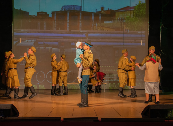 В финале спектакля раздаются звуки авианалёта, бомбёжки, взрывов. Люди падают на землю, мужчины закрывают собой женщин и детей… Затем всё стихает, звучит песня из фильма «Офицеры». Зал встаёт, у многих зрителей на глазах слёзы. Вопрос, понравился ли им спектакль, отпадает сам собой.