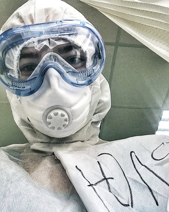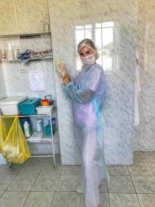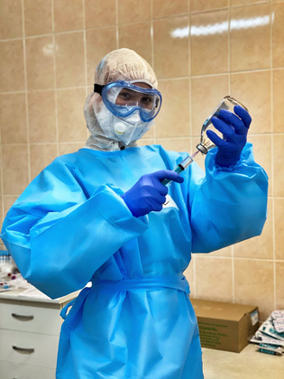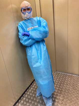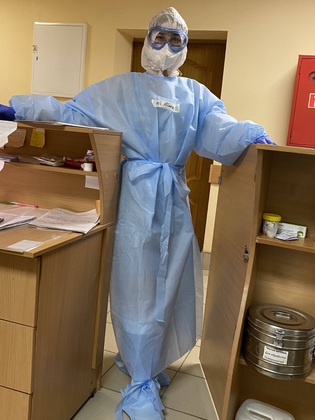 - Конечно, очки (особенно запотевшие) и два слоя перчаток сильно затрудняют постановку капельниц, например. У нас были защитные костюмы, на которые нужно еще надевать халат. На ногах - двойные бахилы. Сверху - капюшон, шапочка, респиратор и очки, которые мы натирали специальным мыльным средством, чтобы они не запотевали. Помогало не всегда. На руках - две пары перчаток. Оставшиеся открытые места заматывали скотчем. В общем, не самая удобная экипировка. А если учесть, что смена длится шесть часов (а при совмещении - все 12 часов), то невозможность в это время покушать или сходить в туалет — то еще испытание.