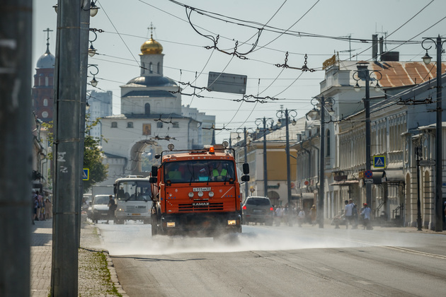 При 30-ти градусной жаре асфальт серьезно накаляется, что может привести к его деформации. Поэтому горожане могут ежедневно наблюдать на городских дорогах поливальные машины.