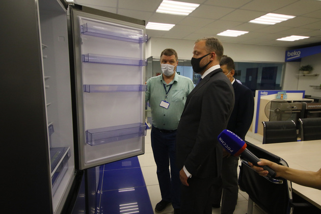 А затем первый вице-губернатор осмотрел производственные линии по выпуску холодильников и стиральных машин.