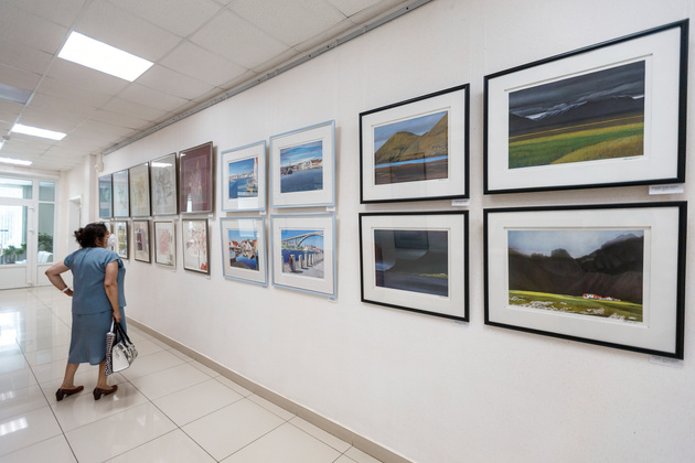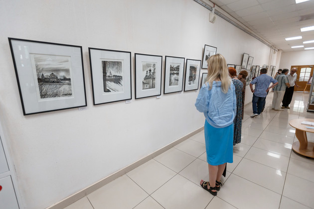 На юбилейной персональной выставке в областной библиотеке представлены работы, выполненные художником в разное время его творчества. Посмотреть их можно до 16 августа.