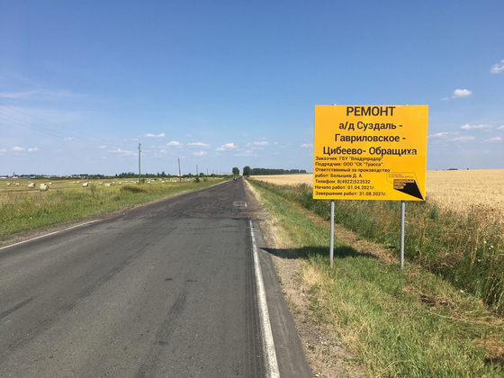 Два года назад дорожные работы на пути Суздаль – Обращиха вели на шести участках общей протяжённостью 11,6 км, в нормативное состояние тогда было приведено более 50% автодороги.