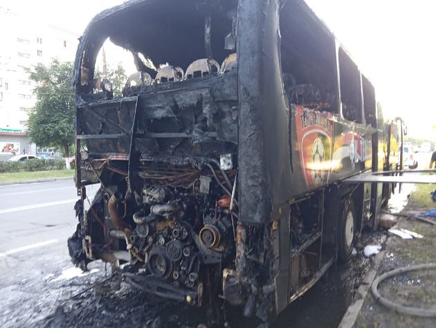 Пожар оперативно залили, как установили позже специалисты, его площадь составила 20 кв. метров. Выгорела половина автобуса.