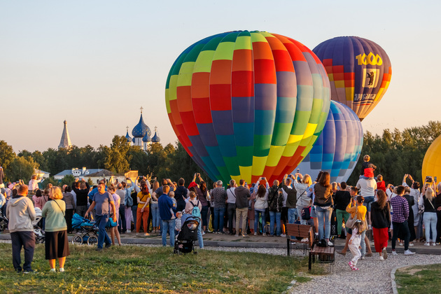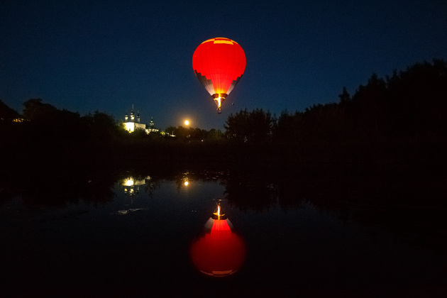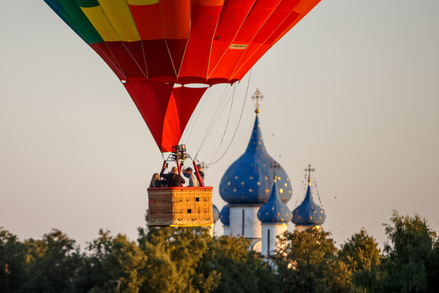 Над городом-музеем два дня подряд летали воздушные шары. И если в первый день фестиваля старт был неудачным, взлететь смогли только два экипажа. Другие остались на Ильинском лугу из-за сильного ветра. То во второй день был полный штиль, и все 16 аэростатов поднялись в небо.