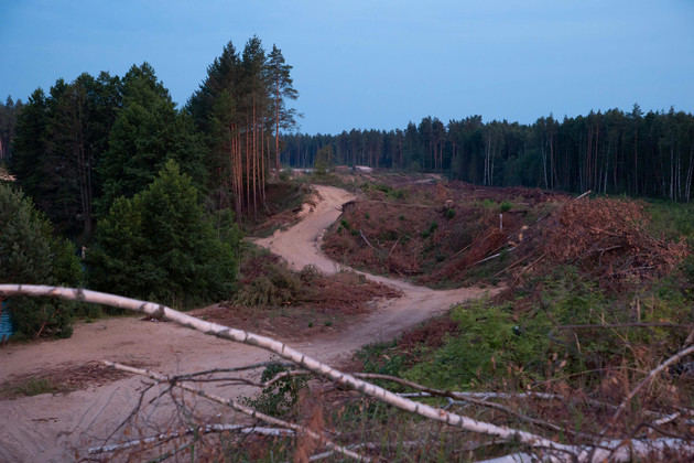 На месте (с противоположной от основного заезда стороны карьера) нас встретил основатель владимирского дайв-клуба, мастер спорта по плаванию Антон Абрамов с коллегой по увлечению. Они и показали нам масштаб проблемы. Метрах в тридцати непосредственно от водоема по всей стороне карьера — довольно высокая (примерно в три человеческих роста) осыпающаяся холмистая стена. Судя по всему, раньше ее держал лес - деревья и плотные кустарники. Сейчас же здесь — на сколько хватает глаз в обе стороны - красуется масштабная вырубка. То есть строительство трассы еще не началось, но подготовка к процессу стартовала. Страшно подумать, что будет, когда сюда приедет тяжелая техника...