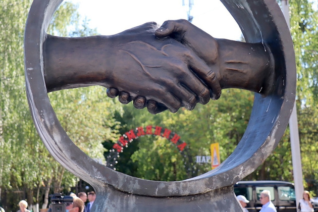Необычную скульптуру - памятный знак «Рукопожатие» - установили в честь дружбы двух территорий-побратимов: района Соколиная Гора города Москвы и Селивановского района Владимирской области. В этом году они отметили 15 лет со дня начала взаимодействия.