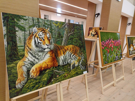 На выставке представлено более 20 работ. Популярное изображение - амурские тигры. В КНДР этих животных почитают как символ силы и благополучия. При изготовлении своих работ шве используют гамму из 25 разных цветов и десятки иголок разной длины. Каждую работу отличает ювелирная точность стежков, нежность цветовых переходов, реалистичность изображения и сохранение народных традиций и приёмов.