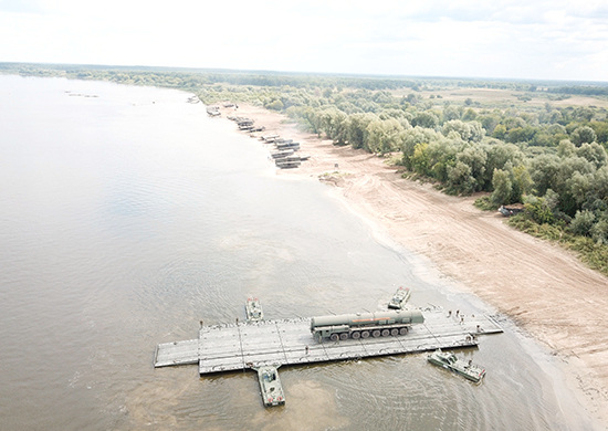 Другие агрегаты «Ярса», в том числе машина обеспечения боевого дежурства, с правого на левый берег Оки переправили с помощью наплавного моста. Расстояние, заметим, составило 500 метров.