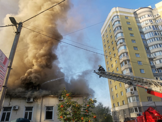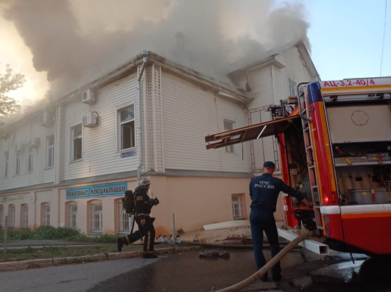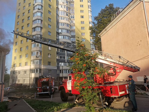 Через считанные минуты пожарные были на месте. На здании горела кровля.