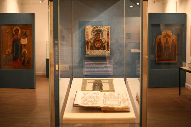 «Сердцем» выставки стала экспозиция, посвященная месту погребения святого князя в Рождественском монастыре – Икона «Знамение с гробницы Александра Невского». По преданию XIX в., этой иконой крестная мать благословила князя перед Ледовым побоищем.