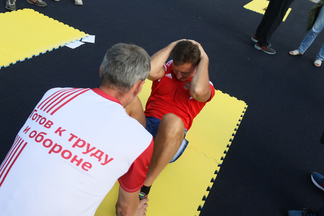 Затем глава региона поехал в спорткомплекс «Молодежный», где в прошлом году был открыт стадион для сдачи норм ГТО. Там губернатор сдал зачет по нескольким дисциплинам. Для получения значка ГТО ему осталось сдать бег, плавание и стрельбу.