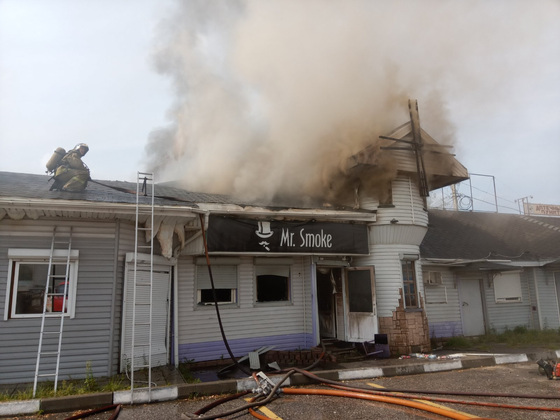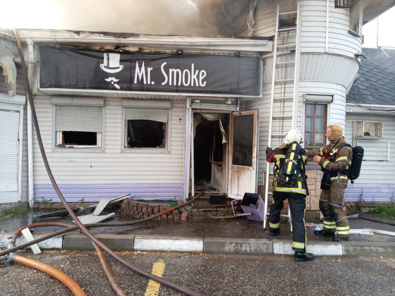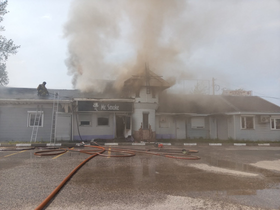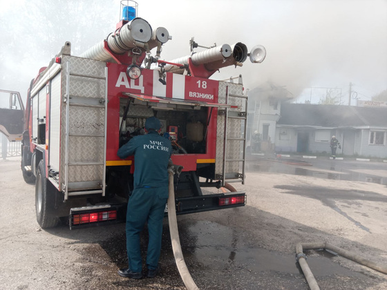 Сотрудники МЧС России ликвидируют пожар в помещении кальянной на улице Ленина в Вязниках. Огнем уже пройдено 300 квадратных метров. Сейчас он угрожает аптеке, которая находится в непосредственной близости к горящему зданию.