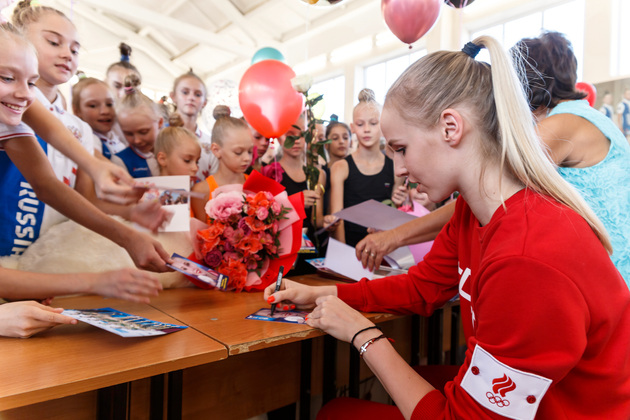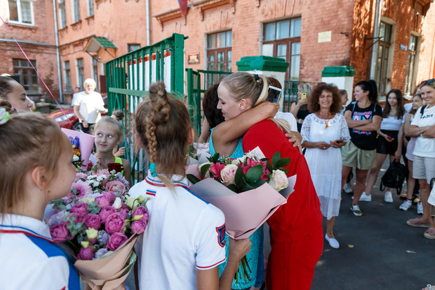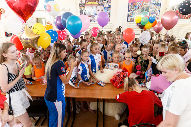 Она приехала во Владимир всего на один день, чтобы повстречаться с близкими и друзьями. Утром – прием у губернатора области и главы города, днем - встреча в школе художественной гимнастики, где ее с нетерпением ждали тренеры и ученицы.