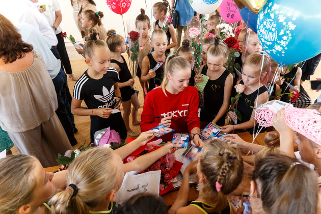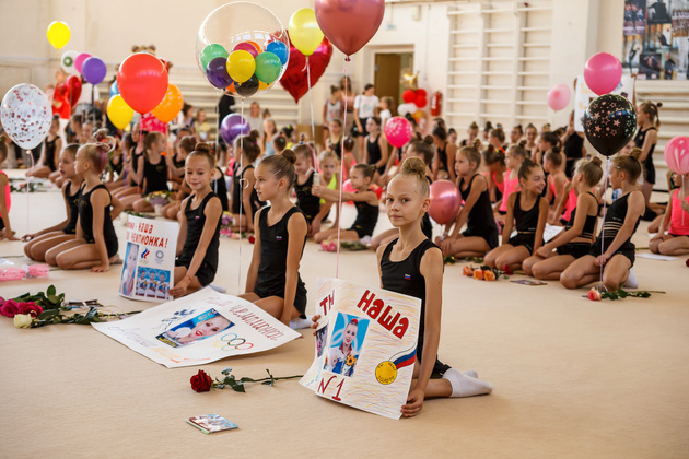 Девчоночки от 5 до 12 лет красиво расселись на гимнастическом ковре. В первом ряду – члены сборной команды Владимирской области. Для них эта встреча была важнее всего, ведь у каждой начинающей спортсменки должен быть кумир. А для многих из владимирских девочек идеал – это «звездочка» Ангелина Шкатова.