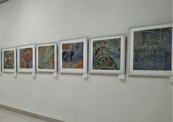 – Верно. Я не допускаю буквального заимствования древних этнических знаков, символов, элементов народного искусства, орнаментов, не эксплуатирую их, а опираюсь только на свое воображение и творческое мышление. Мои декоративные композиции я называю ассоциативными. Это и одиночные работы, и триптихи, и серии. В них меня интересует, прежде всего поиск гармоничного цветового решения графически выстроенного изображения. Пастели имеют самостоятельное значение, как станковые графические листы. Но, при желании, любая из этих композиций вполне может быть воплощена в самых разных техниках — от батика, гобелена и вышивки до витража, эмали и мозаики.