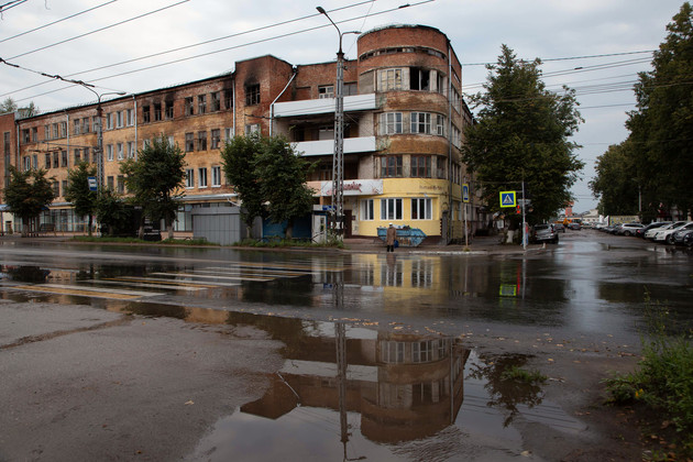 Там, на верхнем этаже, был эпицентр возгорания, огонь ушел на крышу и быстро распространился на все здание. Пожары в этом доме случались и раньше. Но локальные. Сейчас же людям фатально не повезло. То, что не уничтожил огонь, залили при тушении. Две недели спустя в коридоре еще остаются лужи. Как поведут себя отсыревшие деревянные балки, предсказать сложно. Даже стены кое-где обрушились. Так что предосторожности оправданы. Как и полицейское патрулирование: все двери в квартирах снесены, а жильцы еще не успели вывезти имущество.