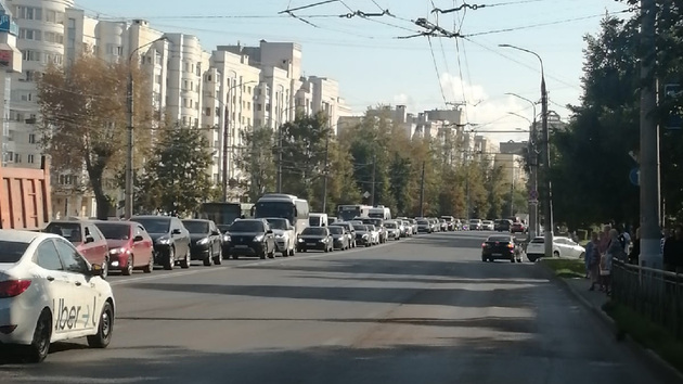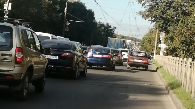 Сегодня утром, 23 августа, во Владимире на проспекте Ленина образовалась жуткая пробка. Эпицентр затора пришёлся на остановку "1001 мелочь".