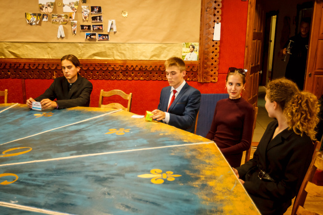 Пока верные соратники пытались переманить на свою сторону как можно больше людей, кандидаты во время круглого стола тренировались перед дебатами, которые ожидали их вечером. В «Искателе» всё не только по-честному, но и по-взрослому. Будущим президентам пришлось отвечать на вопросы о глобальном потеплении, о демографическом взрыве и обязательной воинской обязанности, о компьютерных технологиях и мировой экономике. Рассуждали старшеклассники как настоящие взрослые – приводя сильные аргументы и вступая в жаркие споры. Но хитрость дебатов состоит не только в умении отстоять свою позицию. Важно быть мастером ораторского искусства – уметь подловить противника, завести в тупик его же рассуждений, даже вывести на эмоции. Всем спектром приёмов – начиная от логических доводов и заканчивая манипуляциями и уловками - можно пользоваться. Кстати, дебаты проходили прямо как по телевизору – с рекламными паузами. Каждый отряд готовил свою комичную сценку, чтобы разбавить напряжённую политическую игру.