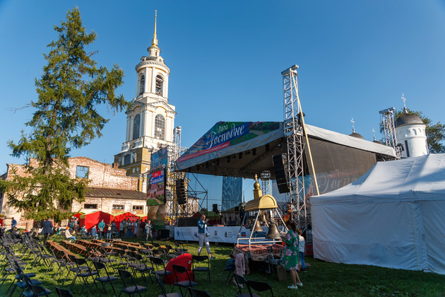 Для гостей фестиваля стояли небольшие звонницы, чтобы каждый смог попробовать позвонить в колокола.