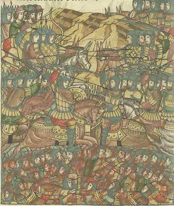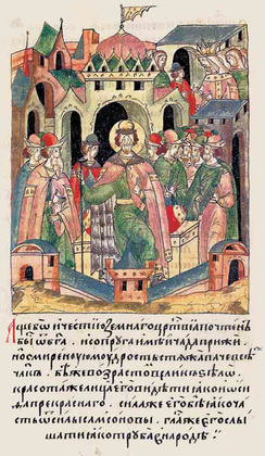 Новгородцы, которые утверждали князя голосованием на вече, сначала Василия приняли. И он, получается, уже лет в 15 повел войско новгородцев громить литовцев, которые совершили набег на Новгородскую землю: догнал, разбил и отнял у них «полон» - то, что они захватили.