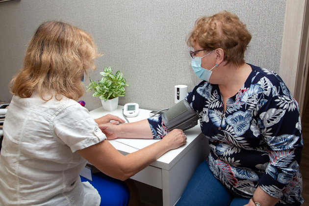 У клиента отделения дневного пребывания Елены Владимировны - поражение суставов и сосудов головного мозга. Есть проблемы с координацией движений. Она только что завершила занятия на стабилотренаженере — с помощью виртуальной реальности пробовала удержать равновесие на скейтборде.