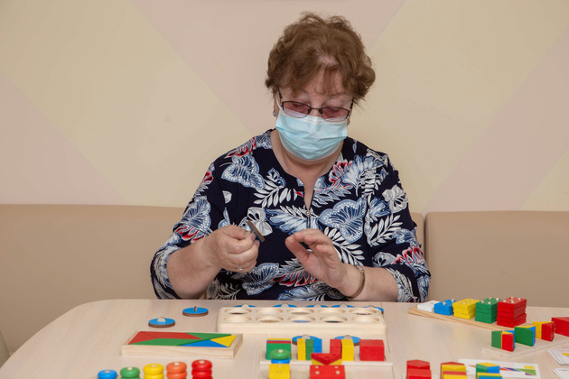Возможностями отделения при желании могут воспользоваться и жители областного дома ветеранов. К примеру, Нина Александровна Алексеева в отделении дневного пребывания занимается второй день.