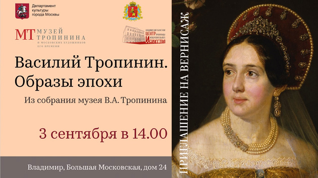 Зритель сможет увидеть 10 работ «патриарха русской живописи» Василия Тропинина, выдающегося портретиста конца XVIII – первой половины XIX века. В состав экспозиции также войдут работы «основателя русской акварельной живописи» Петра Соколова (1787–1848), произведения представителя «школы Венецианова», профессора Императорской Академии художеств Сергея Зарянко (1818–1870), единственного в XIX веке профессионального художника чеченского происхождения, академика Императорской Академии художеств Петра Захарова-Чеченца (1816–1846), академика Императорской Академии художеств Карла Рабуса (1800–1857), преподавателя известного пейзажиста Алексея Саврасова (1830–1897). Среди представленных полотен – такие шедевры как портрет Натальи Еропкиной кисти Евгения Плюшара (1809–1880) и портрет прославленной актрисы Екатерины Семёновой в роли Клитемнестры, приписываемый Оресту Кипренскому (1782–1836).