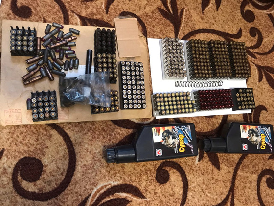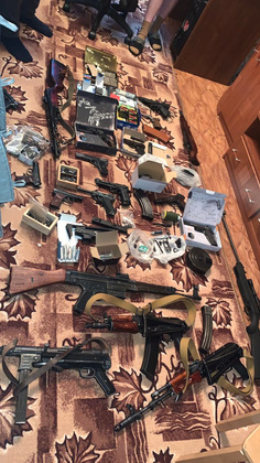 Правоохранительные органы изъяли у фигуранта 4 пистолета калибра 9мм (самодельно изготовленные из охолощенных пистолетов ПМ и ТТ), винтовку калибра 4,5мм (ИЖ-38 с внесенными в ее конструкцию изменениями для стрельбы металлическим снарядом), 155 патронов калибра 9мм, 200 патронов калибра 5,45мм, 79 патронов калибра 4,5мм, 184 травматических патрона, а также основные части и детали оружия.