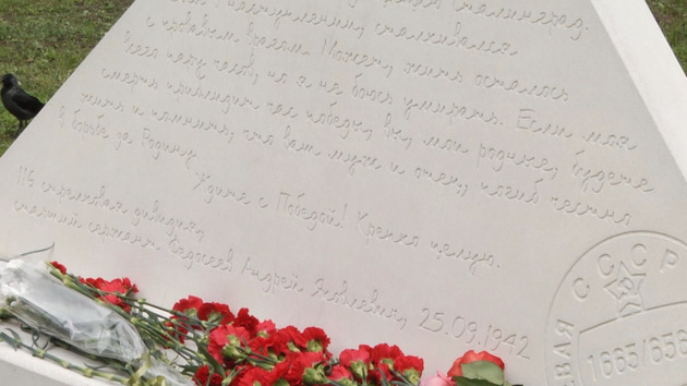 Автор письма, увековеченного в камне, – старший сержант 116-й стрелковой дивизии Андрей Федосеев.