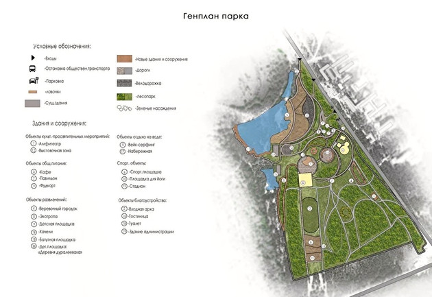 Основной вопрос о чистоте, освещении (в парке вечерами довольно темно, - прим. авт.), а также о возможном преображении детской зоны. Из нового - среди объектов благоустройства - набережная, велодорожка, появление входной арки, лавочек и приличного туалета. Новых зданий и сооружений на предварительной карте немного.