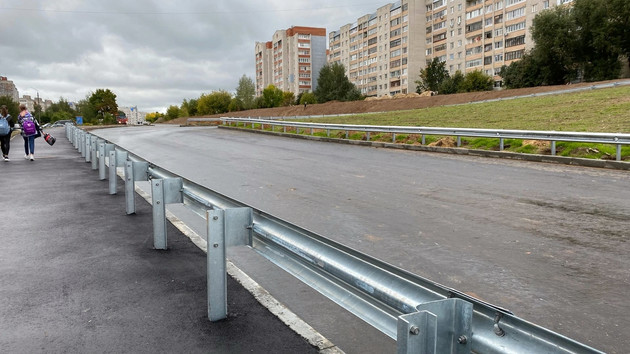 Сейчас вдоль новой дороги устанавливают барьерные и перильные ограждения, скоро начнется монтаж опор уличного освещения, сообщает пресс-служба мэрии.