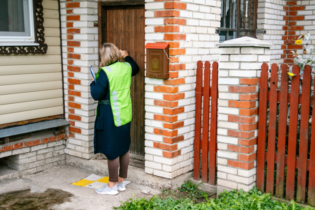Узнаваемый образ переписчика формирует специальная зеленая униформа с символикой СХМП-2021 – жилет и бейсболка. При себе у Марии удостоверение, действительное только при предъявлении паспорта. По поводу безопасности переписчикам беспокоиться не стоило, поскольку при необходимости в обход их сопровождают сотрудники полиции. А на случай встречи с агрессивными животными выдавались отпугиватели для собак. Переписчики заботились и о защите от коронавирусной инфекции в условиях неблагоприятной санитарно-эпидемиологической обстановки: на лицах – маски, а в сумках всегда дезинфицирующие салфетки.