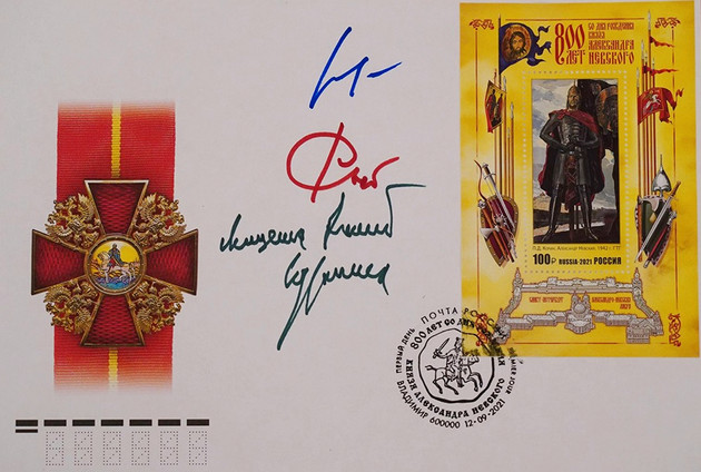 Генеральный директор ВСМЗ Сергей Рыбаков в свою очередь отметил символизм проведения церемонии спецгашения на выставке «Александр Невский. Легенда о святом», посвященной полководцу.