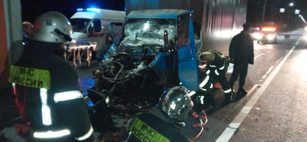 Спасатели получили сообщение о ЧП и необходимости блокировки пострадавшего из водительской кабины в 00-52. По данным МЧС, водитель грузовика не смог самостоятельно выбраться из сильно покореженной кабины. Спасателями проводилась деблокировка.