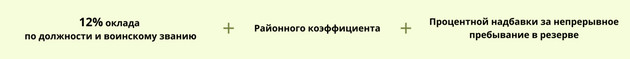 Гражданам выплачивается ежемесячная процентная надбавка за непрерывное пребывание в резерве к месячному окладу в следующих размерах: