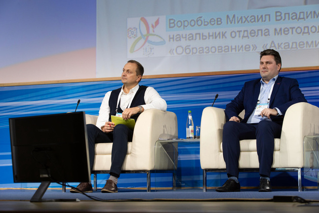 Во время пленарного заседания форума выступили эксперты Академии Минпросвещения России Павел Кузьмин и Михаил Воробьев. Они рассказали о направлениях и возможностях, которые открываются детям и педагогам в рамках реализации нацпроекта «Образование».