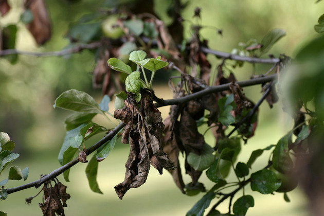 – Главный внешний признак – увядание и гибель цветков, листвы и веток. Деревья в разгар болезни и позднее выглядят как опаленные огнем – отсюда и название: ожог плодовых. Наблюдается окрашивание листьев в цвета от черного до ярко-рыжего, в зависимости от культуры. При этом листья не опадают, – рассказали во владимирском филиале Россельхозцентра. – Заболевание поражает более 160 видов растений из семейства Розоцветные. Особенно страдают груша, яблоня, айва, вишня и черешня. Кора деревьев часто покрывается пузырями и растрескивается. Вытекающая через трещины жидкость застывает в виде капелек от янтарно-желтого до темно-бурого цвета. В сухую погоду кора ссыхается, древесина под ней темнеет и краснеет. Скорость распространения заболевания очень высокая: груша погибает за 2-3 месяца, яблоня и айва – за 3-4 года.