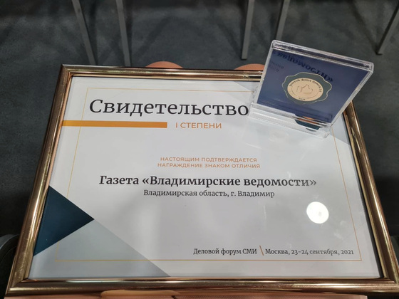 И уже на старте конкурса электронная версия газеты «Владимирские ведомости» удостоена свидетельства о знаке отличия 1-й степени. По словам Юлии Гущиной, эта награда в первую очередь стала результатом успешной работы команды сайта vedom.ru под руководством Андрея Травникова.