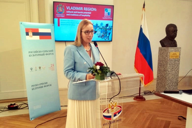 Алиса Бирюкова представила культурно-туристический потенциал Владимирской области в ходе круглого стола на тему «Культура русского гостеприимства». Она рассказала о многочисленных событийных мероприятиях, которые проводятся в нашем регионе, а это - около 350 фестивалей и праздников, среди которых три десятка имеют статус международных.