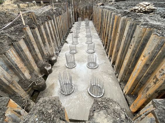 56 буронабивных свай уже установили, стержни углублены в грунт на 22 метра. Этот метод укрепит мостовую конструкцию в подвижных слоях почвы. Ведутся работы по объединению верхних частей свай ростверком, на который осуществляется установка железобетонных колонн – будущих наземных опор моста.